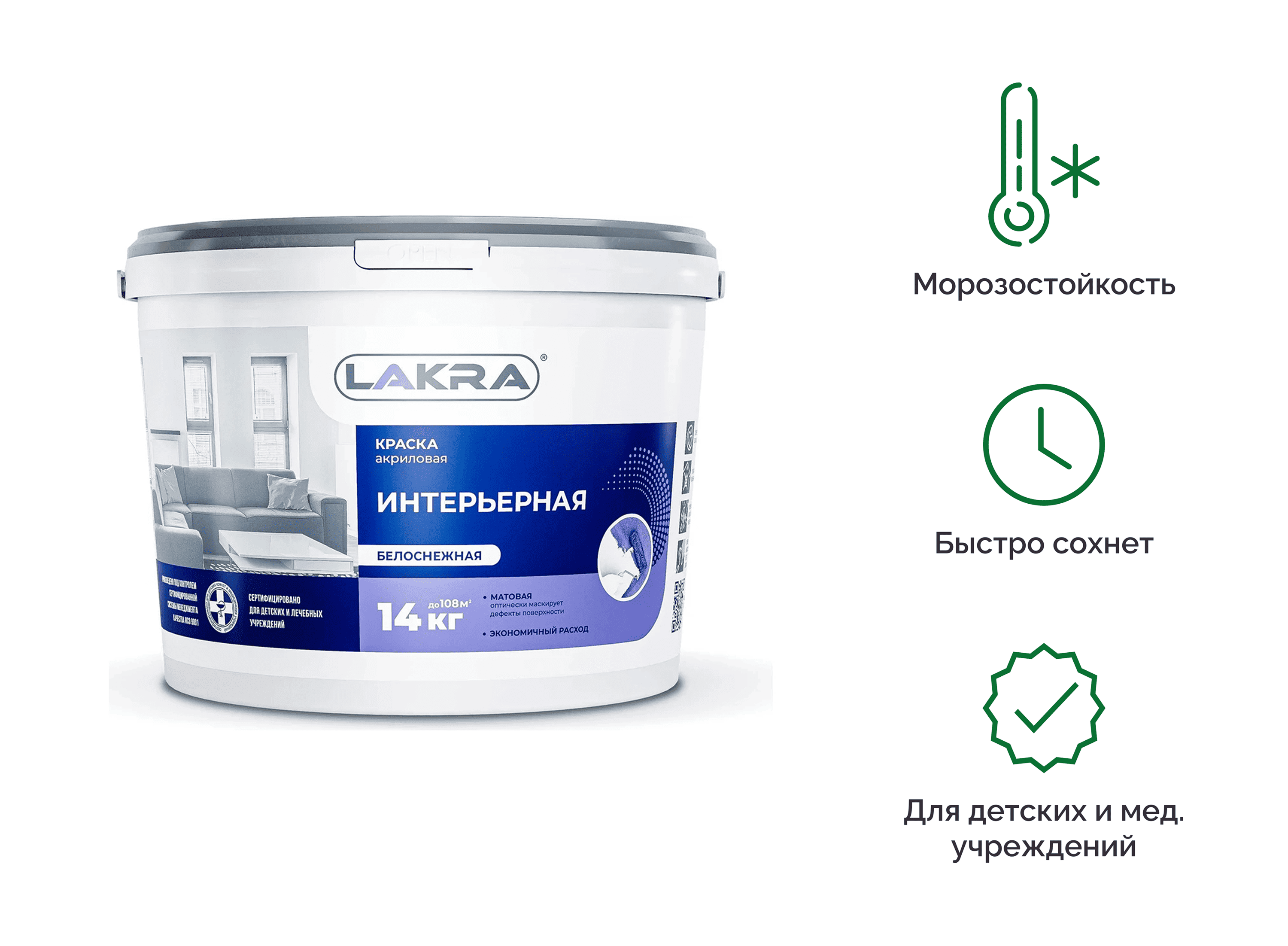 Краска интерьерная Лакра матовая 14кг