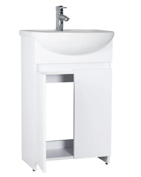 Под тумбу Фламенко Лайт 50 белая идеально подходит умывальник «Ладога 50», что обеспечивает гармоничный дизайн и удобство в использовании.