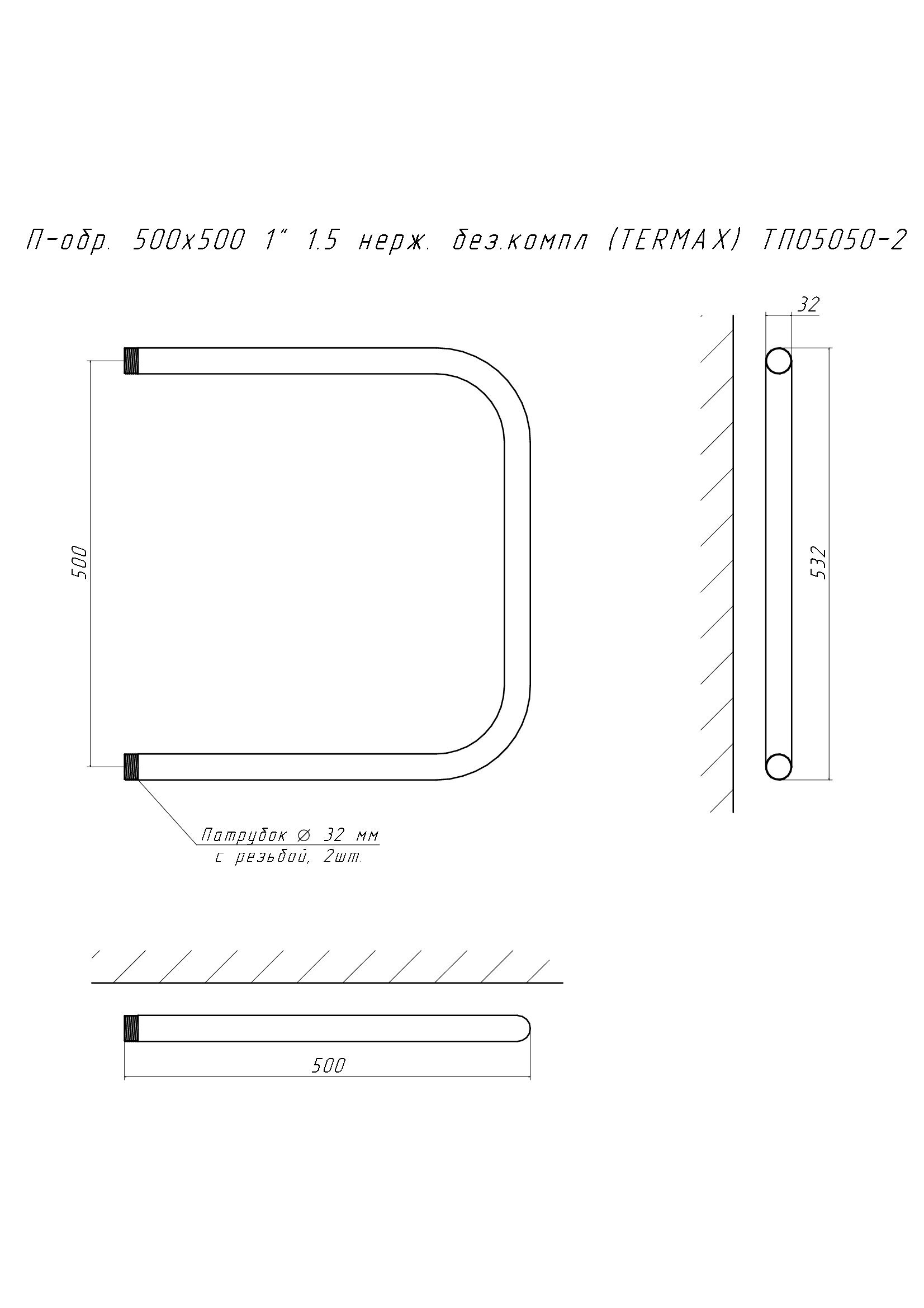 Полотенцесушитель П-обр. 500х500 1" 1.5 нерж. без.компл (TERMAX) ТП05050-2